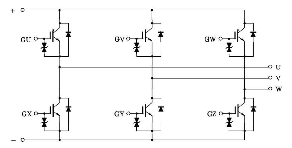 MP6752 features: (1)The Electrodes are Isolated from Case; (2)6 IGBTs are Built Into 1 Package; (3)Enhancement-Mode; (4)Low Saturation Voltage: VCE (sat) = 4.0V (Max.) (IC = 20A); (5)High Speed: tf= 0.35μs (Max.) (IC = 20A) trr = 0.15μs (Max.) (IF = 20A).